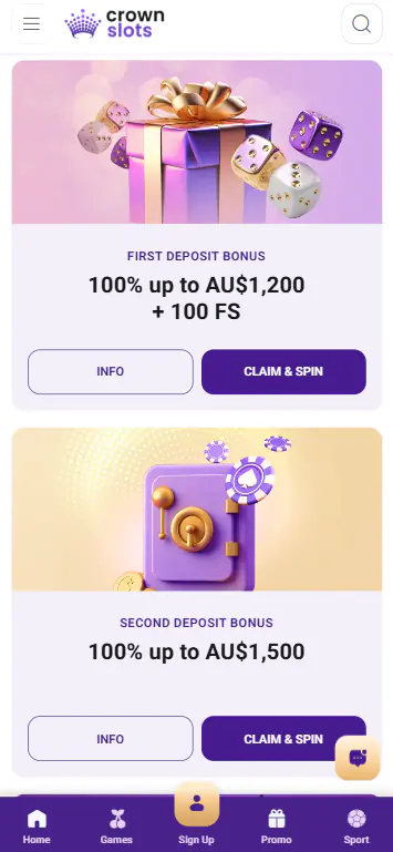 Crownslots casino site offers punters the chance to claim a wide range of online casino bonuses via our mobile app. New users can claim Crown Slots casino welcome bonus offer, as it is available over four deposit stages, while returning players can claim our cashback bonuses and reload bonuses.